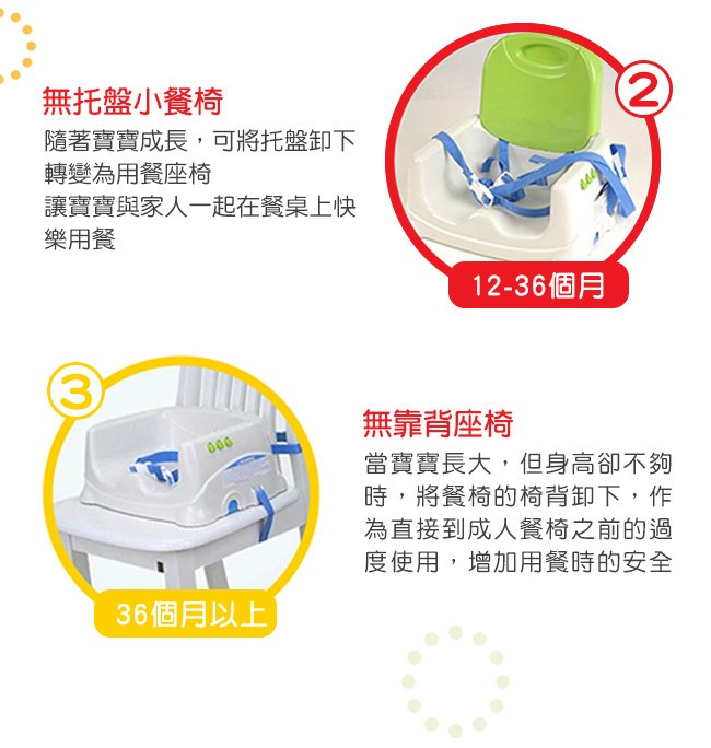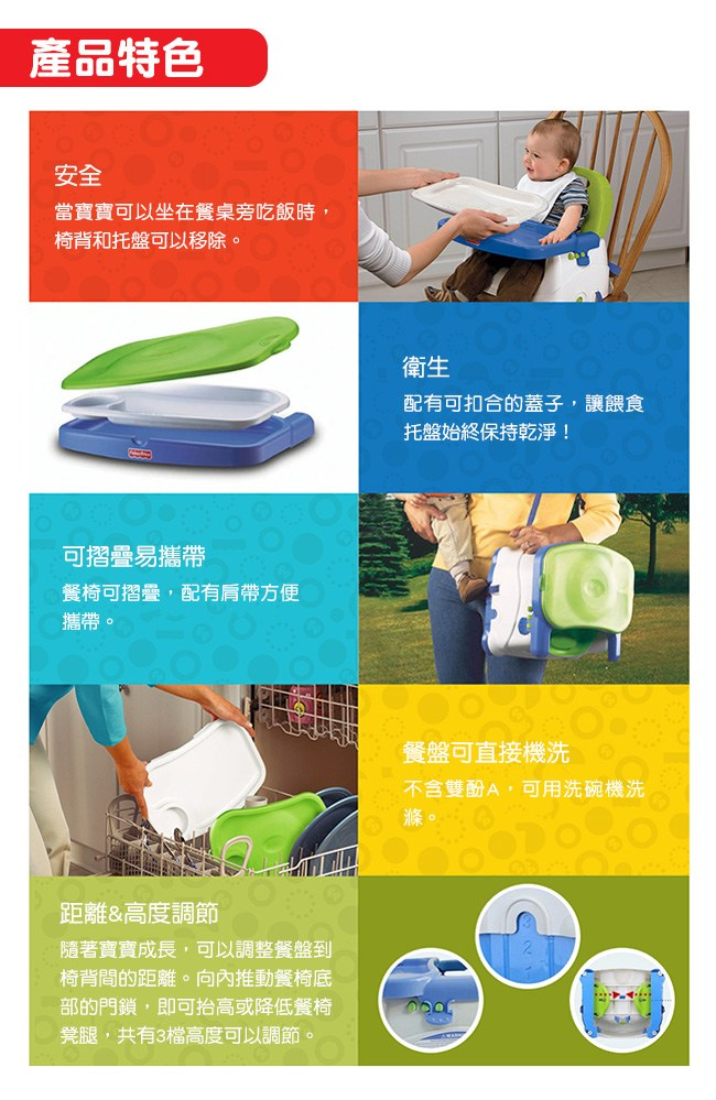 Make meal time even yummier with the Healthy Care Deluxe Booster Seat. Built-for-feeding features include a comfy seat with three height adjustments to custom fit any table, and front and rear seat straps to fit almost any chair. A dishwasher safe tray and insert plus easy to wipe clean surfaces ma