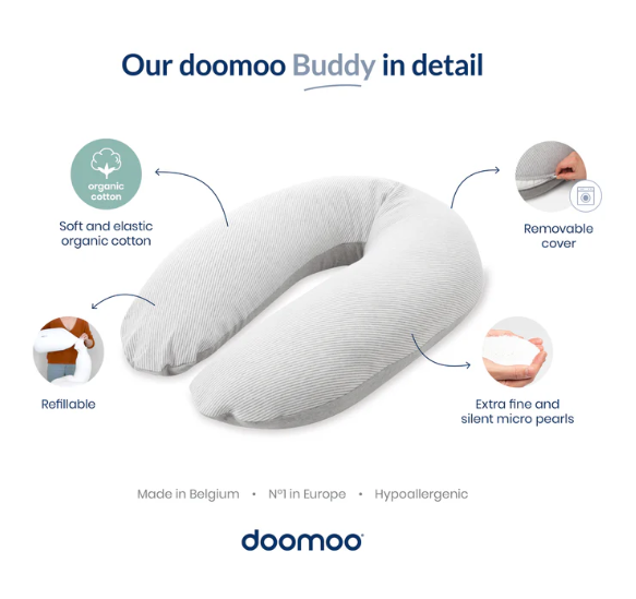 Doomoo Buddy 多功能孕婦哺乳枕是來自比利時的優質母嬰用品,香港行貨保證品質。這款人體工學設計的枕頭專為孕婦和哺乳媽媽打造,採用 Oeko-Tex® 認證有機棉枕套和靜音微珠填充,柔軟靈活、透氣舒適,從孕期支撐腹部、背部和腿部,到產後作為哺乳或奶瓶餵食枕,減輕手臂負擔並維持寶寶放鬆姿勢。尺寸約 180 公分,可拆卸清洗,填充物可替換,多種顏色選擇(如灰色、沙色、綠色等)。不僅緩解孕期不適、促進優質睡眠,還可作為寶寶玩耍休息墊,陪伴寶寶成長,是準媽媽和新手父母的理想夥伴,有助提升母嬰健康與舒適體驗。