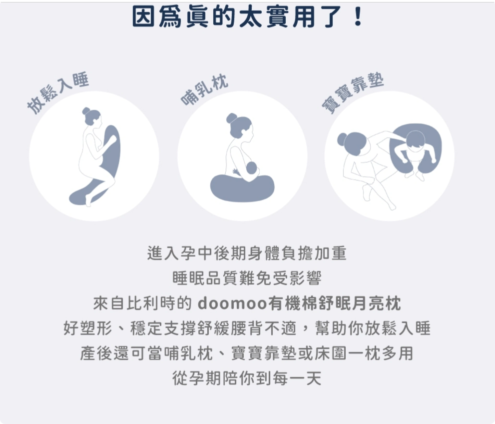 選擇 Doomoo Buddy 多功能孕婦哺乳枕,為孕期與育兒帶來舒適陪伴!更多產品資料