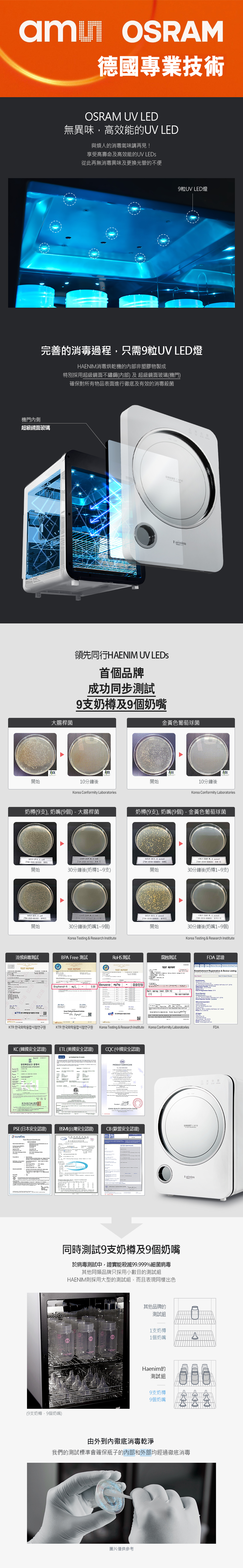 Haenim喜臨UV LED消毒烘乾機(第三代)是現代家庭的超級英雄,搭載先進的UV LED技術,能夠輕鬆消滅99.999%的細菌與病毒,讓你的物品像新的一樣安全衛生!它還擁有24小時無菌儲存和快速消毒功能,讓你在忙碌的生活中也能輕鬆應對衛生挑戰。想知道消毒進度嗎?別擔心,它還有運作時間顯示功能,隨時告訴你一切運行得多順利!這款來自韓國的烘乾機不僅性能超群,外觀也時尚,是每個家庭健康生活的必備良品!