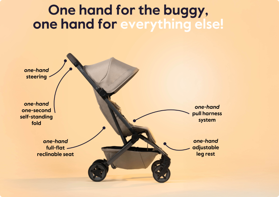 從展開、收摺、調整靠背到安全帶,所有操作都能單手完成。當您一手抱著寶寶時,另一手依然能輕鬆掌控一切。