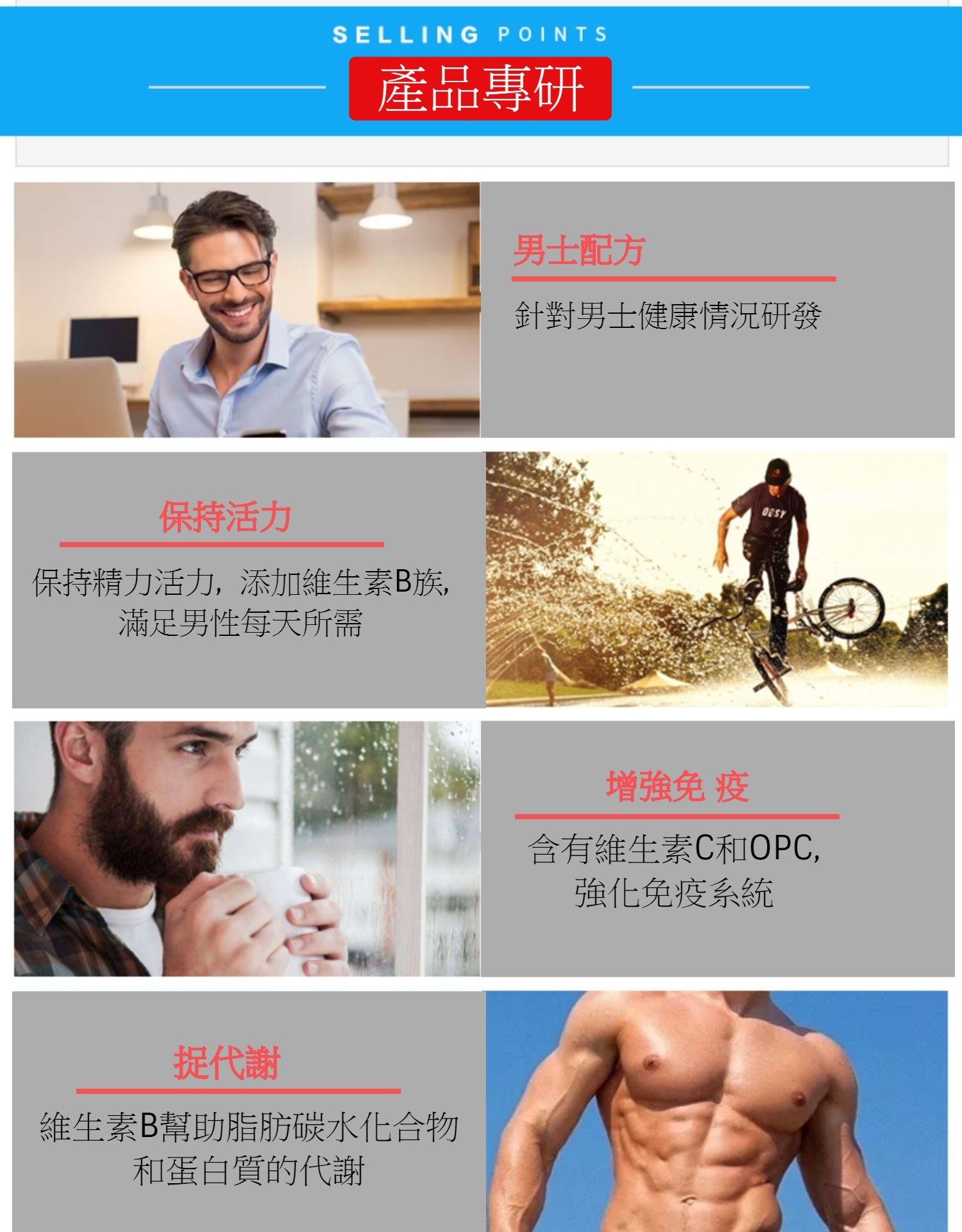 是一種全面的多元維他命配方,蘊含超過40 多種維他命、礦物質、自然草本精華及其他營養物質。一顆打造逾40種健康功效,可支持 男性的營養需要。