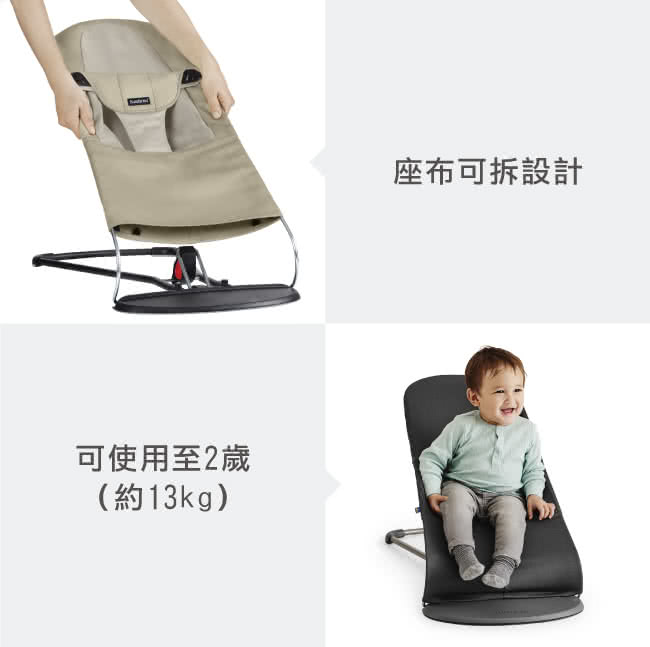 椅子模式(最高13公斤):當寶寶能獨立行走與坐穩時,只需翻轉布料即可轉換為椅子。