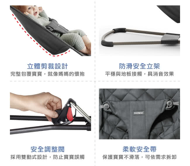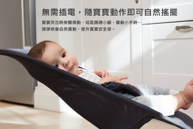 BABYBJORN Bliss 嬰兒搖椅 Air Mesh 為寶寶提供舒適的玩耍與休息空間。當寶寶踢腿或揮動手臂時,搖椅會輕柔搖晃,幫助寶寶發展運動技能與平衡感。適合新生兒至2歲使用,採用人體工學設計,為寶寶的背部、頸部和頭部提供良好支撐。透氣的 Air Mesh 材質確保舒適並均勻分散體重,對新生兒尤為重要。